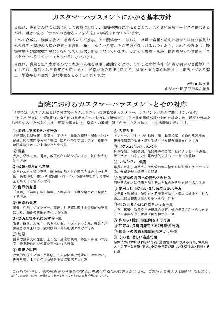 HOME > 当院について > 規程・指針等 > カスタマーハラスメントにかかる基本方針